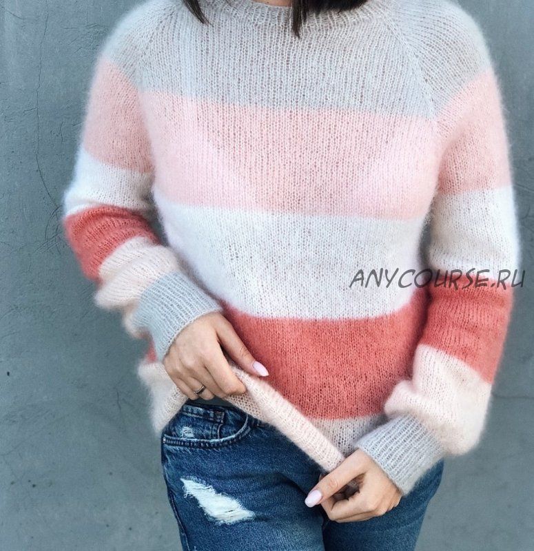 - Джемпер вяжется по кругу в технике реглан сверху.