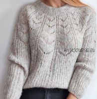 Джемпер с круглой кокеткой, свободного облегания, с чуть заниженной линией проймы, вяжется снизу вверх единой деталью по кругу до пройм. Рукава вяжутся отдельно по кругу, далее тело свитера соединяется с рукавами и вяжется кокетка вверх. Росток вяжется поворотными рядами.