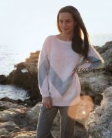 Цветное вязание выполняется без протяжек, нить аккуратно прокладывается по краю рисунка, по изнаночной стороне джемпера.