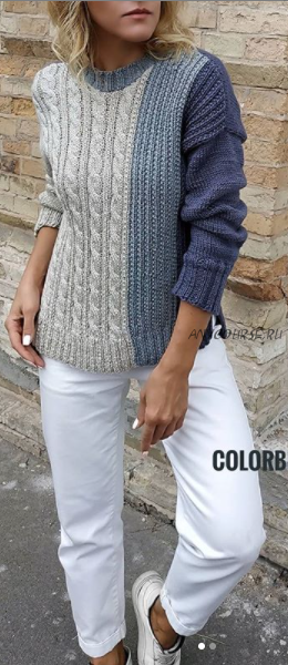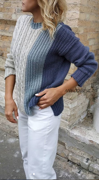 Вяжем джемпер отдельными частями, рукава - круговое вязание.