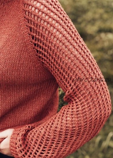 - Очень осенний, стильный джемпер с ажурными рукавами.
