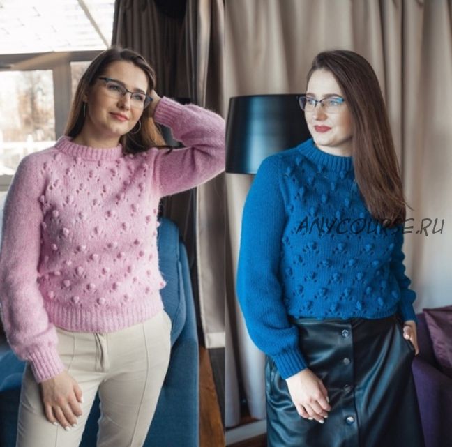 ? Крой изделия реглан - погон сверху с ростом и подрезом. В описании даётся вариант с шишечками по переду. Так же, можно связать с шишечками по спинке или без них.