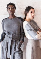 Цветной блок на рукаве выполнен в актуальной технике интарсия.