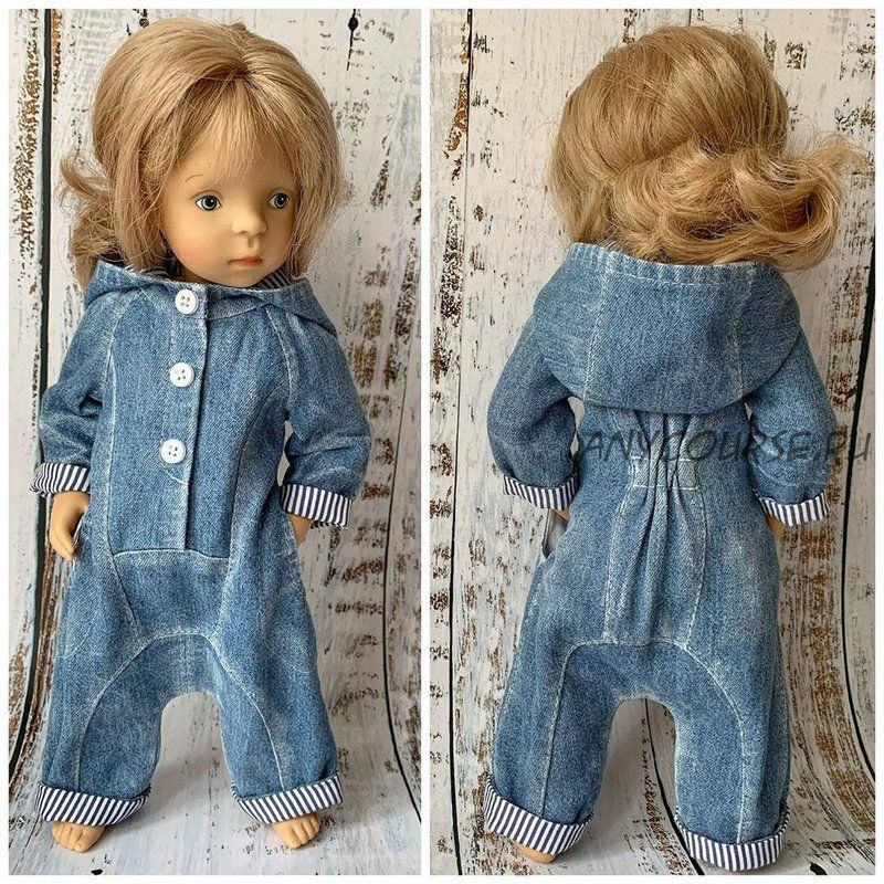 Вы сможете самостоятельно создать стильный джинсовый комбинезон для своей куклы.