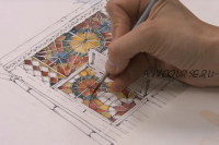 Цель: Опираясь на референс, определяемся с линиями перспективы, разбираем по цветам витражи, создаем эскиз, карандашный набросок (картон) и переносим его на чистовик (акварельный лист). Продолжительность: 2 часа.