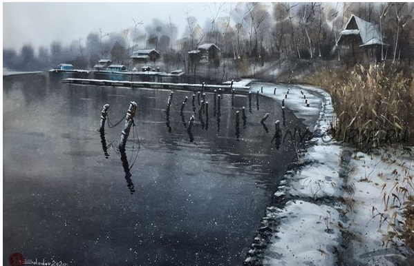 Как разглядеть красоту в свинцовом небе и какими средствами передать ее в акварели, знает Николай Солодов.