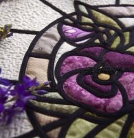 Что такое техника 'Витраж'? Это текстильно-аппликативная стилизация под стеклянный витраж. Все линии в этой технике максимально упрощены. Каждый лоскут ткани ограничен перемычкой.