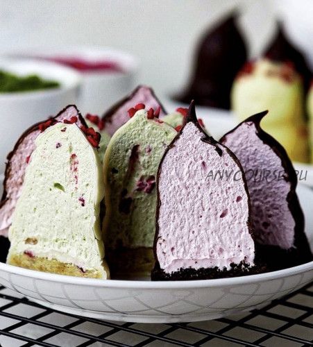 - Нежные флюдеболле с чаем матча и малиной на лимонной печеньке в белом шоколаде.