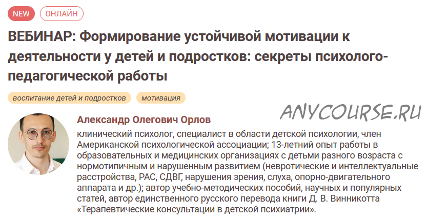 Формирование устойчивой мотивации к деятельности у детей и подростков (Александр Орлов)