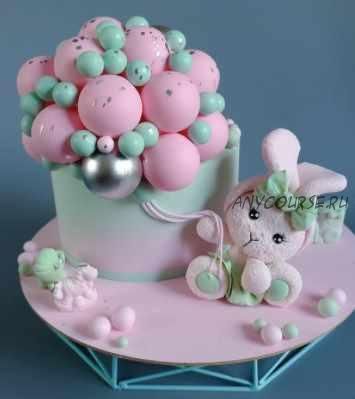 • Конструкция из шаров и крепление на торт. Такое оформление можно сделать как на муссовый, так и на бисквитный торт