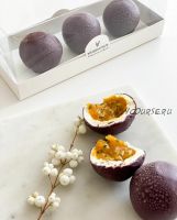 Внутри пирожного 'Маракуя' таится яркий, сочный вкус маракуйи! Но это не просто маракуйя, это сочетание разных текстур страстного фрукта.