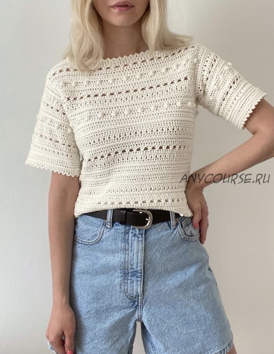 Изделие вяжется снизу вверх поворотными рядами. Прямой силуэт свободного кроя. Квадратная пройма. Вырез горловины - овальный.
