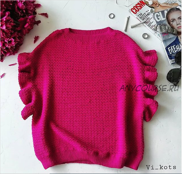 Футболка связана из Nako Calico ince 100г/490м (100% хлопок). Цвет 4569. Крючок N3. На 46 размер одежды - расход 300г.