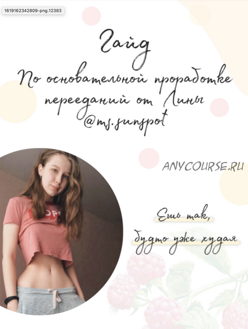 – это глубокая работа с вашим питанием и восприятием еды. В нем собраны уникальные техники проработки пищевого поведения с целью избавления вас от зависимости от еды и похудения