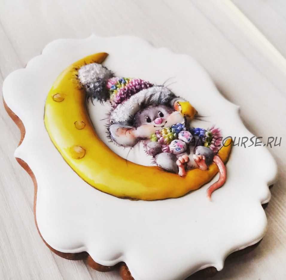 Мы подготовили для вас очень полезный мастер-класс, в котором Елена Кортусова подробно рассказывает и показывает, как создать объёмный рисунок на прянике. Герой изображения – мышонок на луне.