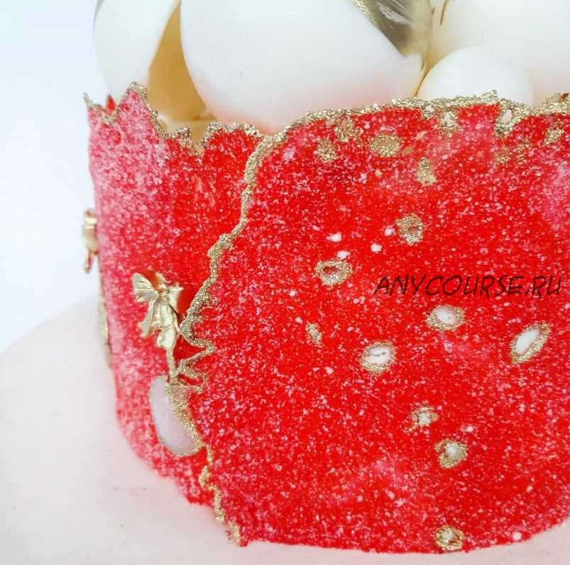 Ответственный момент наступил — пора обрезать готовые сахарные листы, придавая им нужную форму, и разместить на торте. Виктория наглядно покажет весь процесс и поделится идеей интересного дополнения листа деталями другого цвета. Сахар на сахаре — так можно было бы назвать этот вид отделки, но такое название звучит слишком скучно для почти игрушечного украшения.