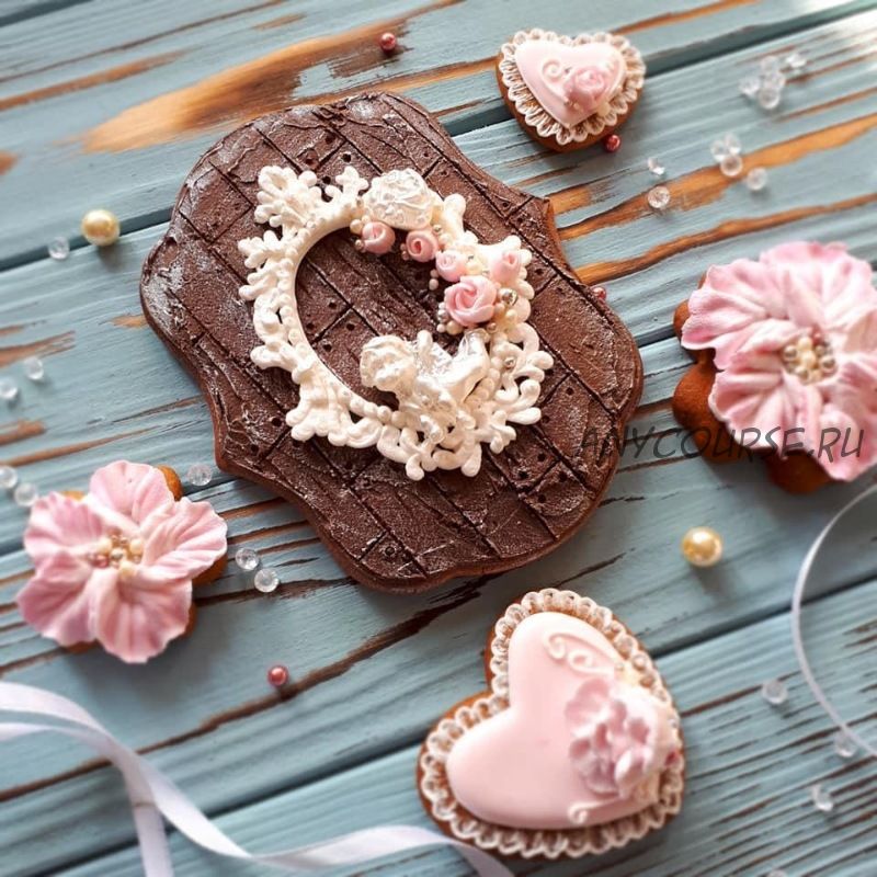 ? Изящный пряничек с нежным декором — рамкой из айсинга и изомальтовым ангелом — превосходное дополнение к пасхальным сувенирам.