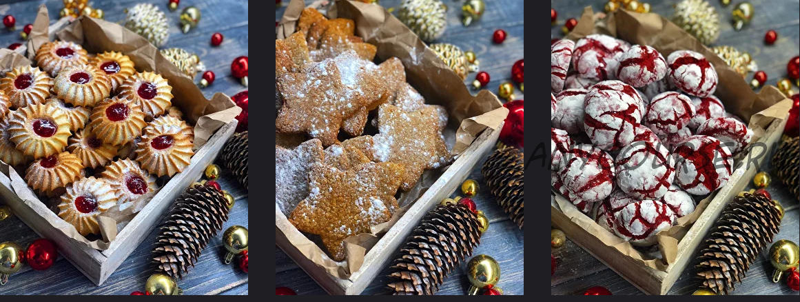 Покупаете красивую коробку, мы так лично вообще берём коробки под новогодние венки. Добавляем наполнитель или нарядную бумагу тишью и раскладываем печенье.