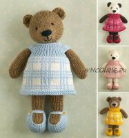 PDF-файл содержит подробные инструкции по вязанию и отделке мишки в клетчатом платье.