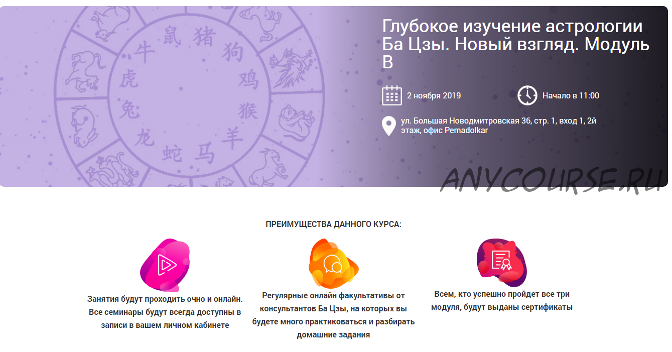 Это глубокий и полный курс для тех, кто хочет изучить Ба Цзы как для личного использования, так и профессионального консультирования. Вас ждут интенсивные занятия с Ольгой Николаевой. Вы будете обучаться по технике мировых классических школ китайской астрологии, которые мало кому доступны. Курс подойдет как для абсолютных новичков, так и для тех, кто ранее уже проходил курсы по Ба Цзы. Это будут совершенно новые знания, поражающие своей точностью.