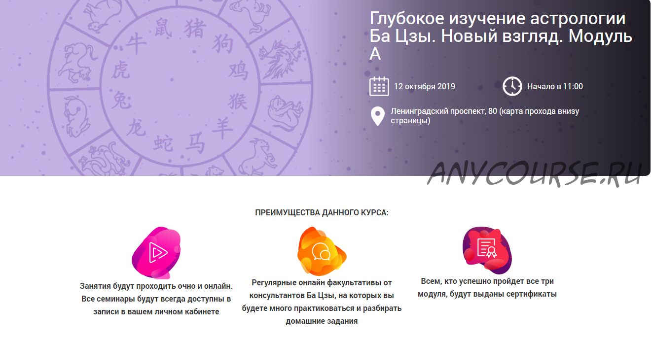 Это глубокий и полный курс для тех, кто хочет изучить Ба Цзы как для личного использования, так и профессионального консультирования. Вас ждут интенсивные занятия с Ольгой Николаевой. Вы будете обучаться по технике мировых классических школ китайской астрологии, которые мало кому доступны. Курс подойдет как для абсолютных новичков, так и для тех, кто ранее уже проходил курсы по Ба Цзы. Это будут совершенно новые знания, поражающие своей точностью.