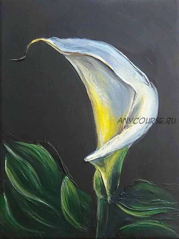 И при этом с минимальным количеством материалов. На уроках мы будем создавать яркую, контрастную работу акрилом! Мы напишем ЦВЕТОК КАЛЛЫ на темном фоне.На интенсиве вы узнаете как написать цветок крупным планом, как передать форму и фактуру.