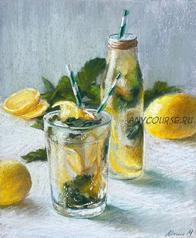 Вы узнаете как написать и передать фактуру лимона и стеклянной бутылки! Как реалистично передать прохладу холодного напитка.