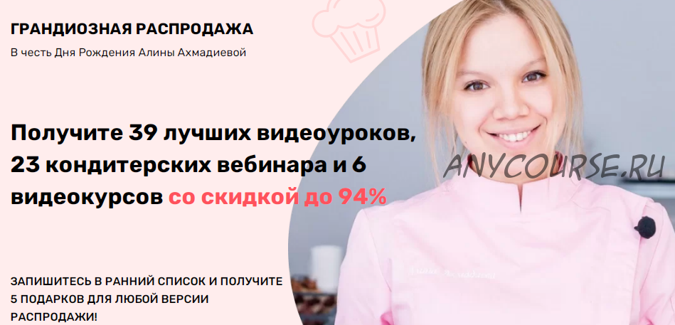 ? 39 кондитерских уроков + 6 видеокурсов ('Фуршетный стол', 'Сладкий стол', 'Мой Первый торт', 'Декорирование тортов и десертов», «Macarons» и «Пряники» ) + 23 вебинара (доступ навсегда)