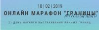 ? Онлайн марафон 'Границы' — это 21 день практик, направленных на изучение своих личных границ и выстраивание гармоничного общения с окружающими людьми.