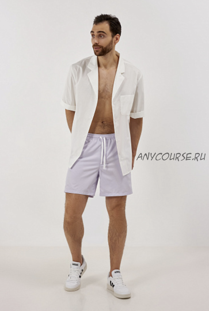 ? Выкройка мужских шорт. Мужские шорты для плавания, с внутренними трусами. Линия талии занижена на 7 см. Шов сидения занижен на 3 см. Боковые швы смещены на перед. В боковых швах расположены карманы с листочкой. На правой задней половинке расположен накладной карман. На переде ложный гульфик. Срез талии обработан притачным поясом кулисой, с отстрочкой. В пояс вставлена эластичная тесьма и шнур. Шнур продет через отверстия, обработанные как петли. Вырез для ног на трусах обработан эластичной тесьмой, для плотного прилегания к телу.