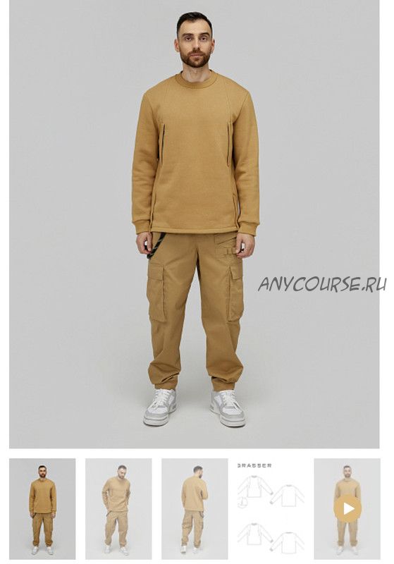 ? Выкройка свитшота. Свитшот мужской прямого силуэта, умеренного объема, длиной ниже линии бедер. Перед с двумя наклонными вертикальными рельефами, в которых расположены карманы с листочкой с настрочными концами и застежкой на молнию. Рельеф со шлицей с застежкой на 3 кнопки. Рукав втачной, плечо спущено на 3 см, низ рукава обработан притачной манжетой. Горловина округлой формы, обработана обтачкой.