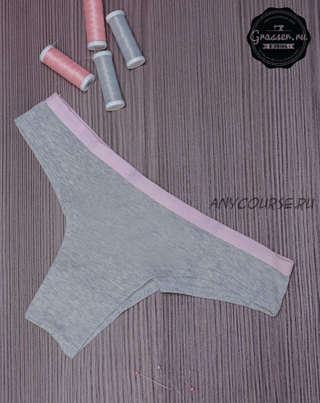 Выкройка трусов. Трусы-бразильяна с заниженной талией. Задняя деталь со средним швом. Талия оформлена отделочной эластичной тесьмой. Вырез для ног умеренной величины. Длина изделия по середине задней части трусов в 44 размере – 17,0 см в готовом виде без учета эластичной тесьмы (талия сзади занижена на 8,0 см).