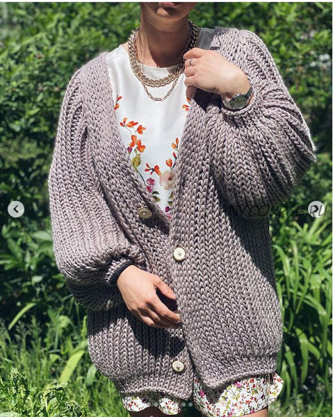 Но так как модель овер, смело можно вязать размер 48-50 на 52-54 с менее свободным облеганием изделия. Количество мотков указано на короткий вариант кардигана, на длинный вариант- прибавляем 2 мотка к каждому размеру. ?