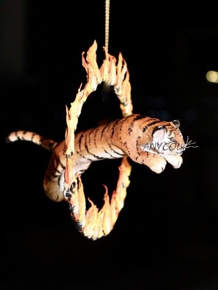 Прекрасным украшением елки станет тигр, летящий через огненное кольцо