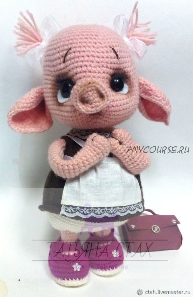 Девочка Хрюша- Умница ,связана из детского акрила , одежда съемная, внутри проволочный каркас, набивка гипоаллергенный синтепух . Полностью ручная работа . Может быть вязаный передник . Мастер класс содержит фото каждого этапа . Уровень сложности средний. рост 27 см