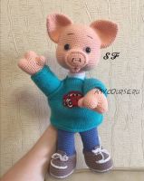 Мастер класс в PDF формате на 23 стр. содержит 46 фотографий и подробное описание процесса вязания крючком Хрюши, а так же вязание спицами свитер. Рост 30 см