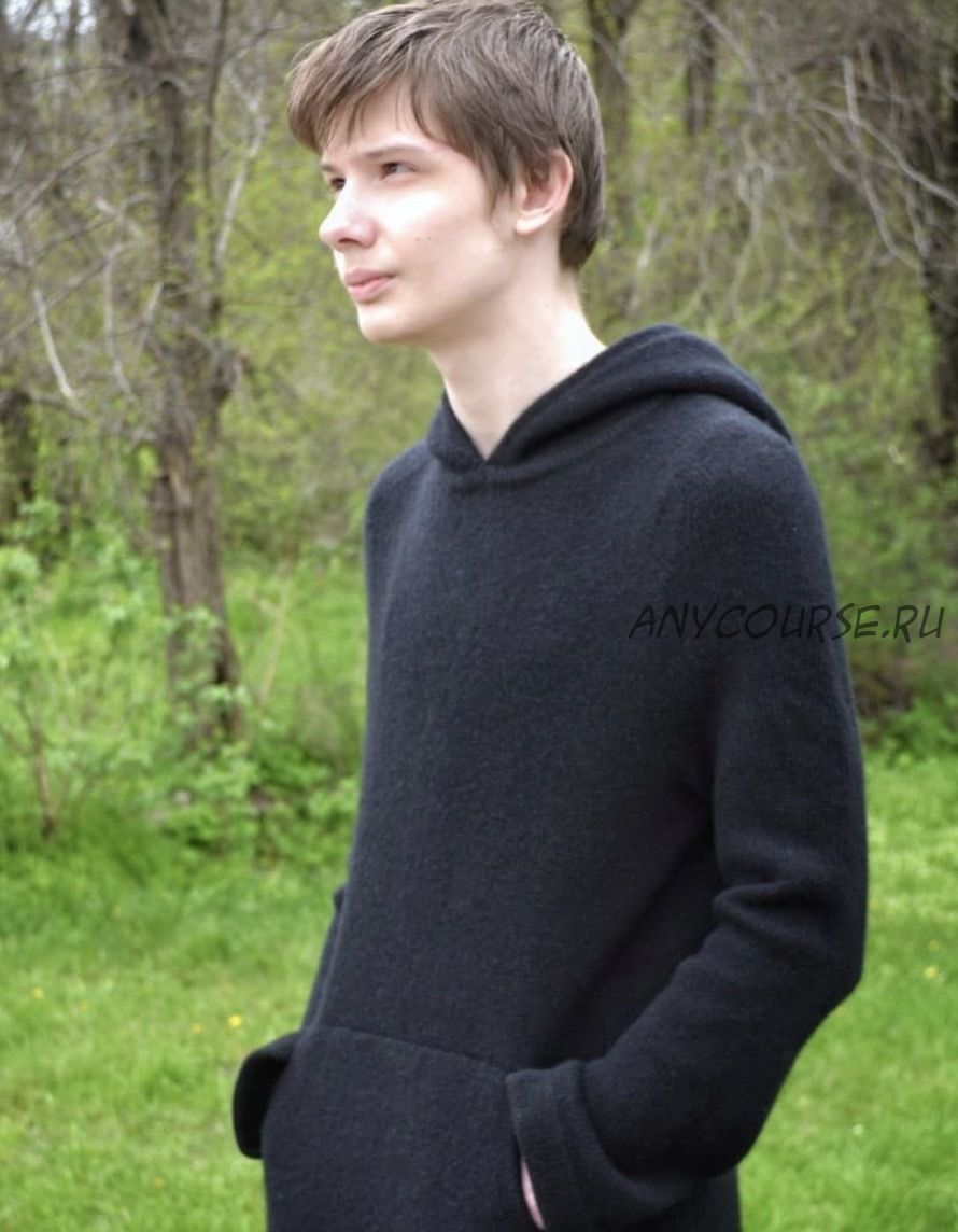 Капюшон удобный и комфортный. Гладкая линия макушки, без уголков и складок. Вяжется сверху вниз, соединяется с телом худи стандартной или ложной кеттлевкой 'в карман'.