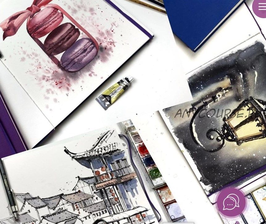 Онлайн-курс от Дарьи Куцаевой и Художник Online для тех, кто хочет научиться основам акварельного скетчинга. Уроки в студийном качестве, теория и практика.
