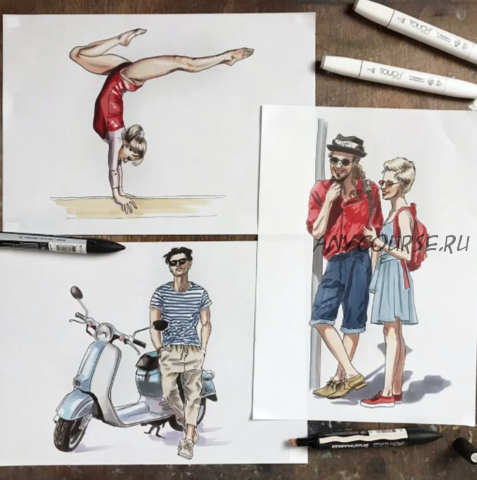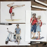 На мини-курсе «Люди маркерами» вы научитесь рисовать людей в разных позах (контрапост, стойка на руках) и ситуациях (человек и окружении, несколько фигур).