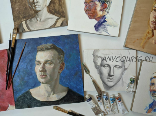 ? Курс состоит из трех блоков. Теоретической части, в которой вы разберетесь со строением черепа и частей лица, а затем выполните 2 портрета в технике гризайли (без использования цвета). Уроков, посвященных созданию быстрых этюдов в различном освещении. И, наконец, сложных длительных портретов.