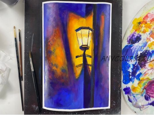 В каждом из трех уроков мини-курса вы будете узнавать что-то новое о том, как показать светящиеся предметы. На первом занятии Екатерина Бердюгина расскажет, как написать уличный фонарь на стене. Вы выполните работу в вертикальном формате, понаблюдаете за тем, как свет преломляется на плоскости и найдете необычные цвета в глубоких синих тенях. Преподаватель научит вас работать с холодными и теплыми оттенками, а также объяснит, как найти камертон, который поможет без ошибок выстроить тональность картины.