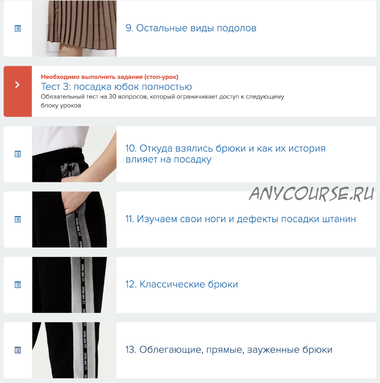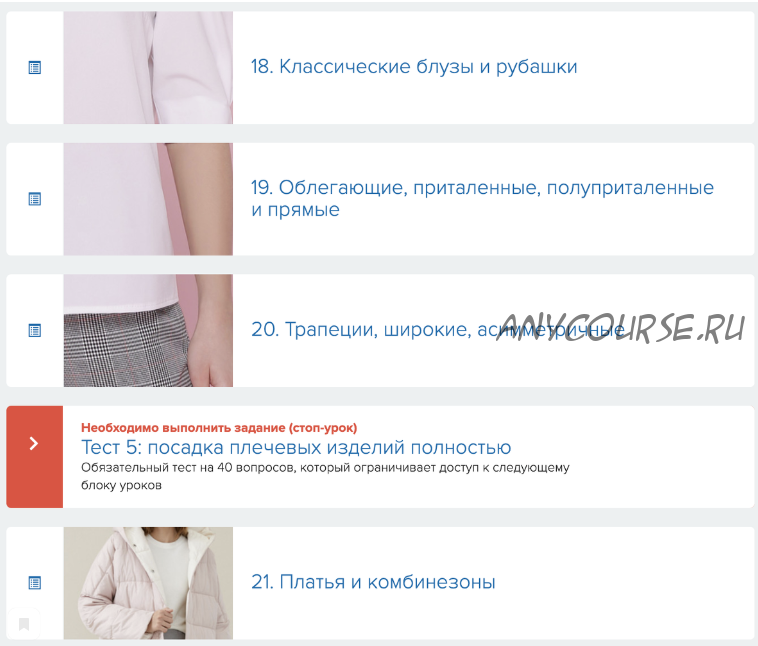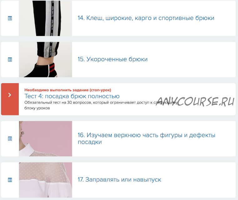 Здесь полученные знания будут закрепляться на практике с помощью довольно объемных тестов, которые позволят вам увидеть примеры хорошей и плохой посадки одежды с разных ракурсов, в больших количествах и все это крепко запомнить.