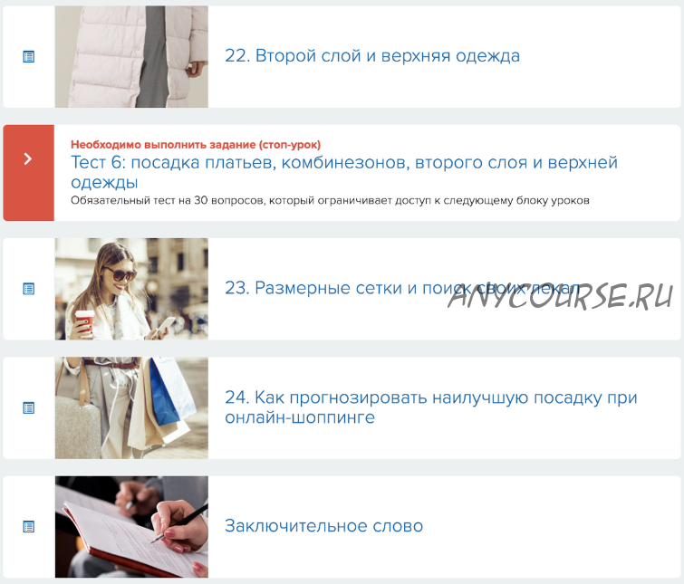Сначала полностью проходится идеальная посадка, а в конце — основы удачного онлайн-шоппинга, где мы обсудим как выбирать в онлайне вещи так, чтобы они подошли.