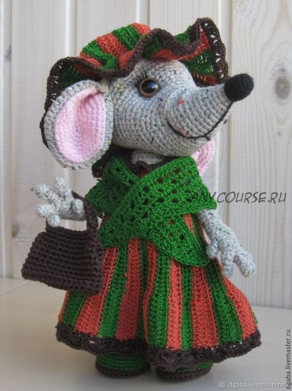Мастер класс в формате PDF содержит подробное описание поэтапного вязания Мыши, одежды для неё, обуви и сумки. 32 страницы, порядка 60 фотографий. Уровень сложности выше среднего, навыки вязания крючком обязательны.