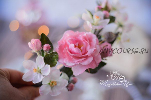 Создание нежнейших цветов яблони в трёх степенях роспуска цветка (раскрытый цветок, полураскрытый и бутон). При этом вам не понадобиться покупать большие наборы молдов или вайнеро, понадобится один единственный молд одного лепестка. Так же как сделать молодое яблочко, реалистичные листья (с разными степенями зрелости и характерным зеленоватым налётом), создание тычинок и пестика, чашелистиков цветка (с использованием самодельного молда).