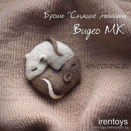 ? Видео мастер-класс по созданию войлочной броши 'Спящие мышата' методом сухого валяния.