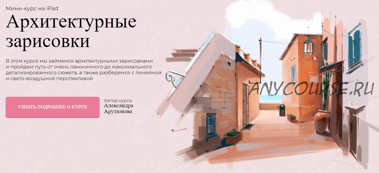 В этом курсе мы займемся архитектурными зарисовками и пройдем путь от очень лаконичного до максимального детализированного сюжета, а также разберемся с линейной и свето-воздушной перспективой
