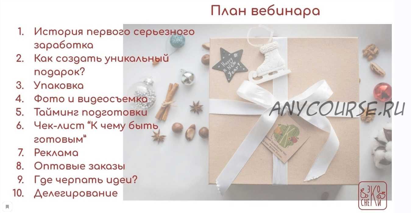 В этом вебинаре раскрыли свой трех-летний опыт. Мы наделали кучу ошибок в свое время. От просроченных заказов упаковки, до неправильного подбора подарочных наборов.