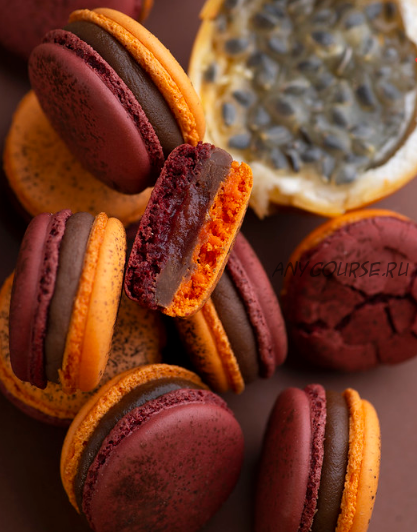 Чтобы центр макарона имел привлекательный блеск и контрастный ганашу вкус мы добавили в него конфи из красного апельсина.