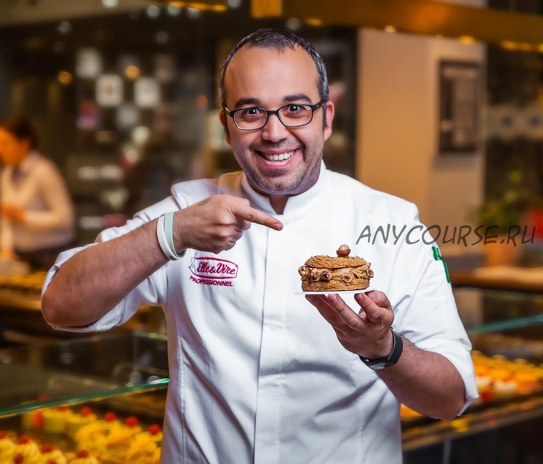 - Тирамису: Фисташковый бисквит, хрустящий фисташковый слой, конфи клубничный, намелака с ванилью и шоколадом Opalys, легкий клубничный мусс, наппаж с клубникой.